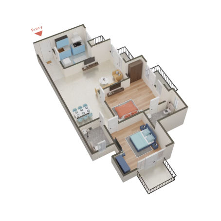 - Woodwork with Teak Veneered / Mica Finished in all Bedrooms